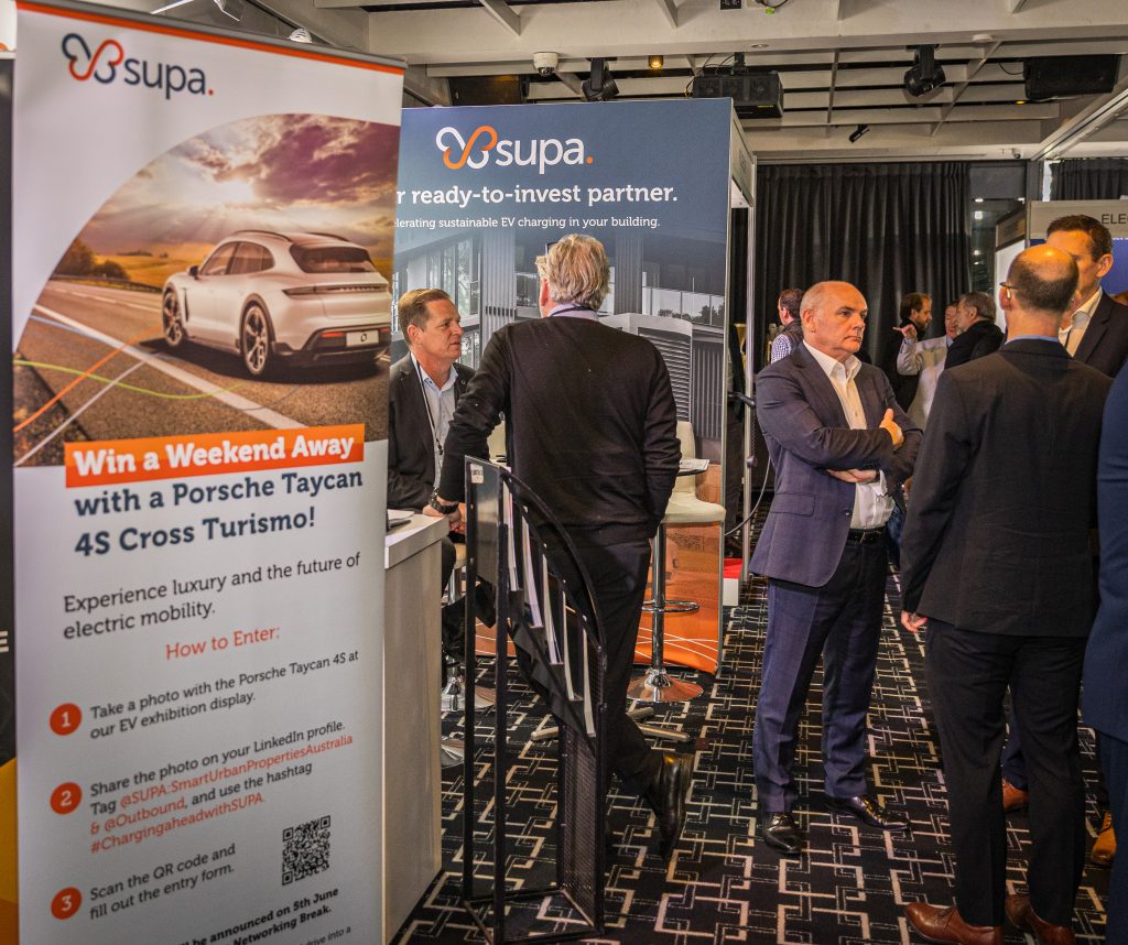 - EV Display: SUPA’s presence at the summit was marked by an eye-catching EV display with a Porsche Taycan 4S Cross Turismo at the front of Doltone House Darling Island. Created in collaboration with strategic partners JET Charge and Outbound Mobility, this display allowed attendees to experience firsthand what the future of EV mobility looks like with SUPA.